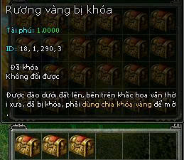 - Bảo rương cổ: Đối thoại sẽ nhận được ngẫu nhiên rương Đồng, Bạc, Vàng, cần chìa khóa tương ứng mua tại Kỳ Trân Các (Ctrl G) để mở