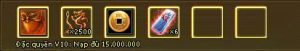Rút thành công sẽ nhận được Đồng, Đồng có thể sử dụng để: Đổi thành Kim Nguyên Bảo Mua Thỏi Vàng trên Kỳ Trân Các (Phím tắt Ctrl G) đổi lấy Bạc Mua Tinh Lực – Hoạt Lực để chế đồ |
